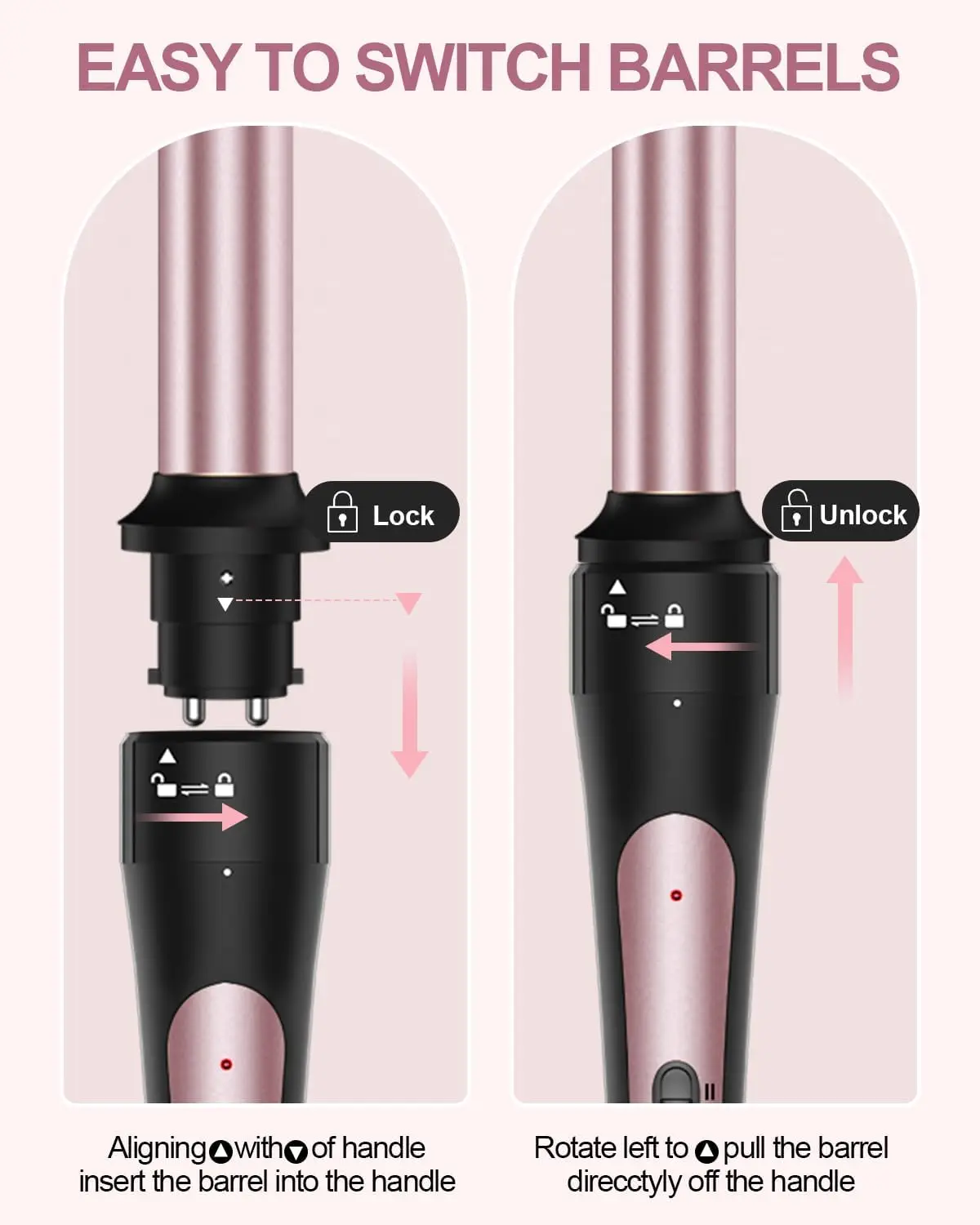 6 in 1 Curling Iron, Curling Wand Set with Thermal Brush (1.5inch) & 1inch Bubble Curling Wand and 3 Interchangeable Ceramic Bar