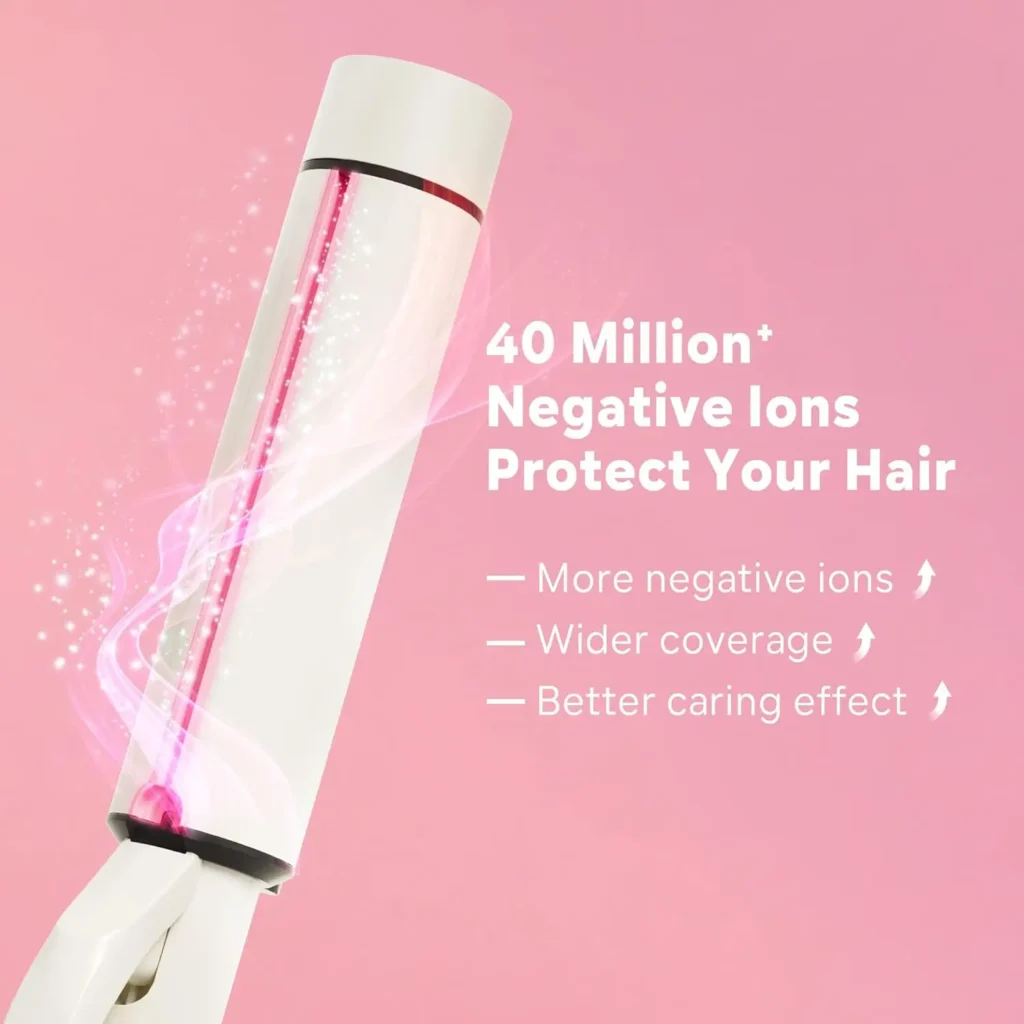1.5 Inch Extra Large Curling Wand for Long Hair – Ceramic Tourmaline Barrel with 40000000 Negative Ions, 2 Clips