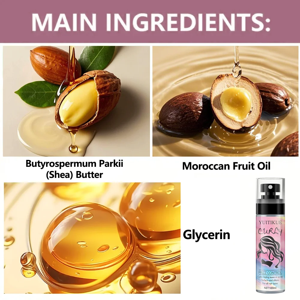 Curly Hair Anti-Frizz Control No-Wash Spray – Achieve a perfect style, smooth shine, suitable for all hair types.