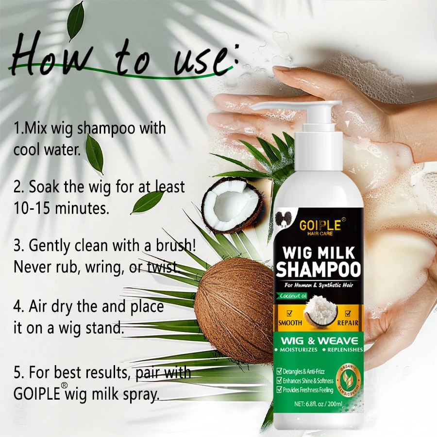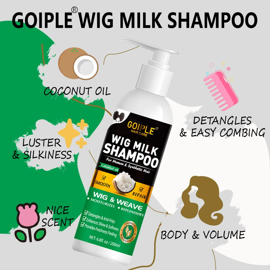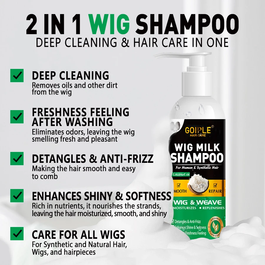 GOIPLE Natural Coconut Oil Wig Milk Shampoo Smooth Repair Moisturizes Frizzy Hair for Wigs Wave 2 in 1 Wig Wash Care Product