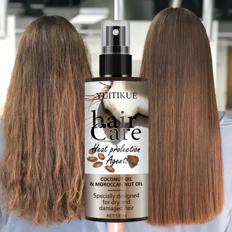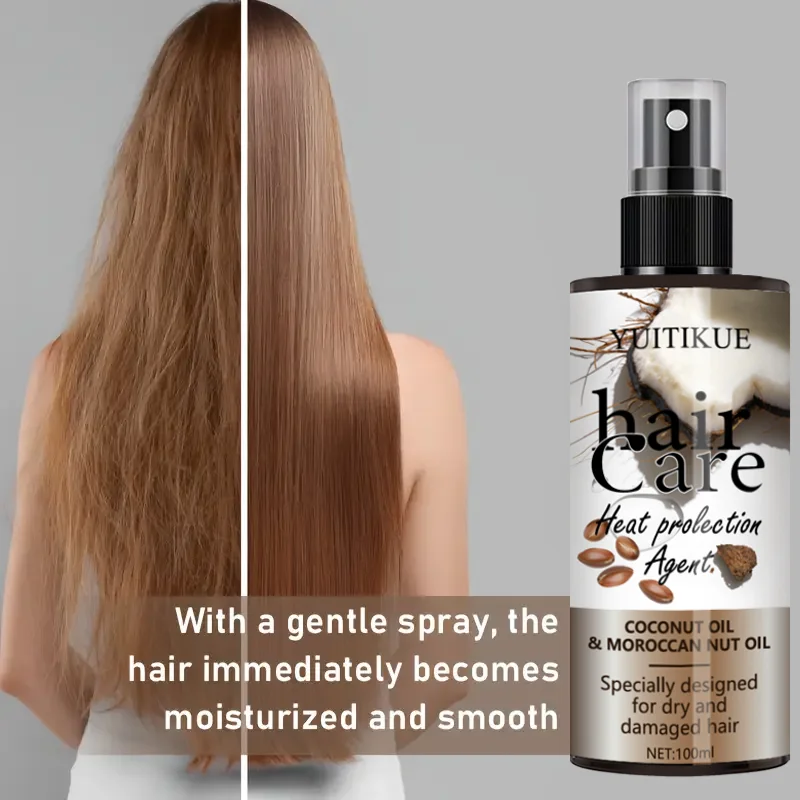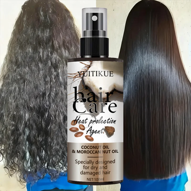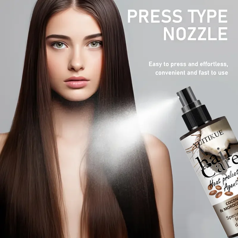 ​Leave-In Heat Protectant Spray w/ Coconut & Moroccan Oil – Moisturize & Smooth Dry Damaged Hair, Easy Press Nozzle