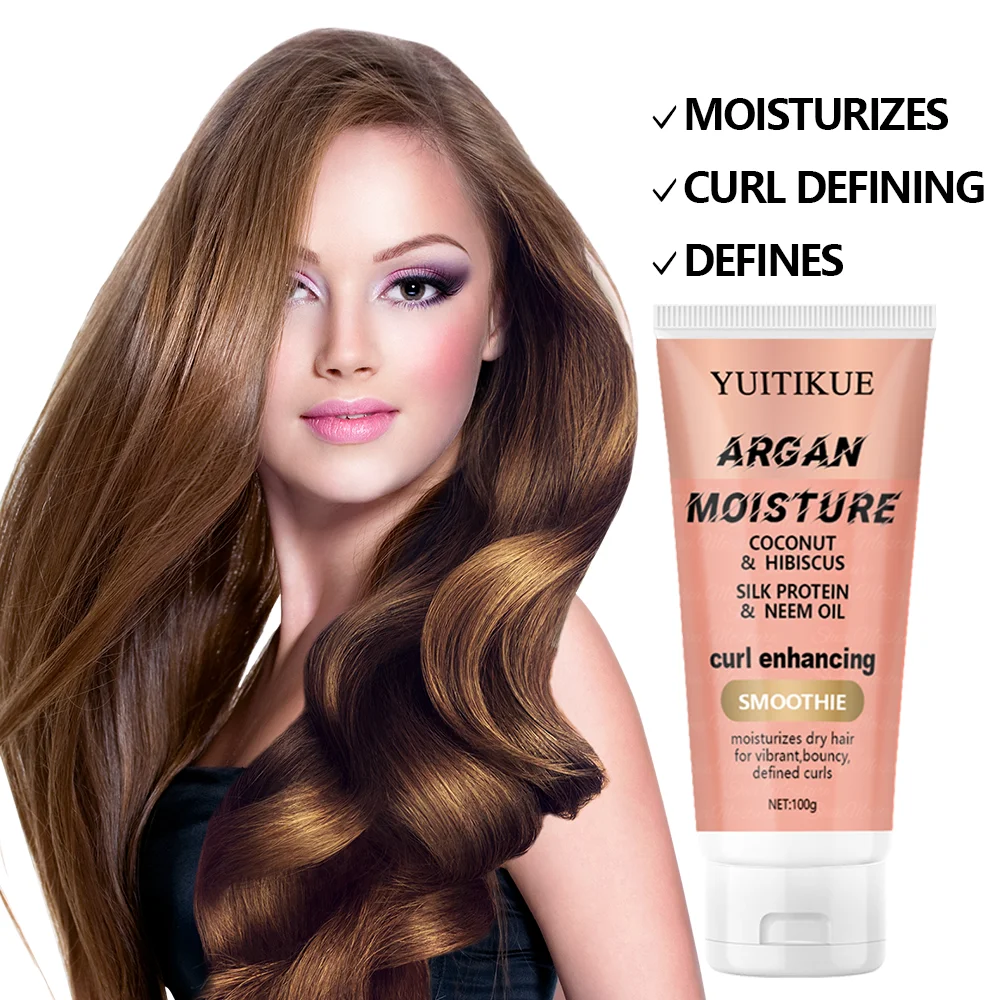 Moroccan Argan Oil and Coconut Oil Curl Cream, long-lasting shine and freshness, enhances curls.